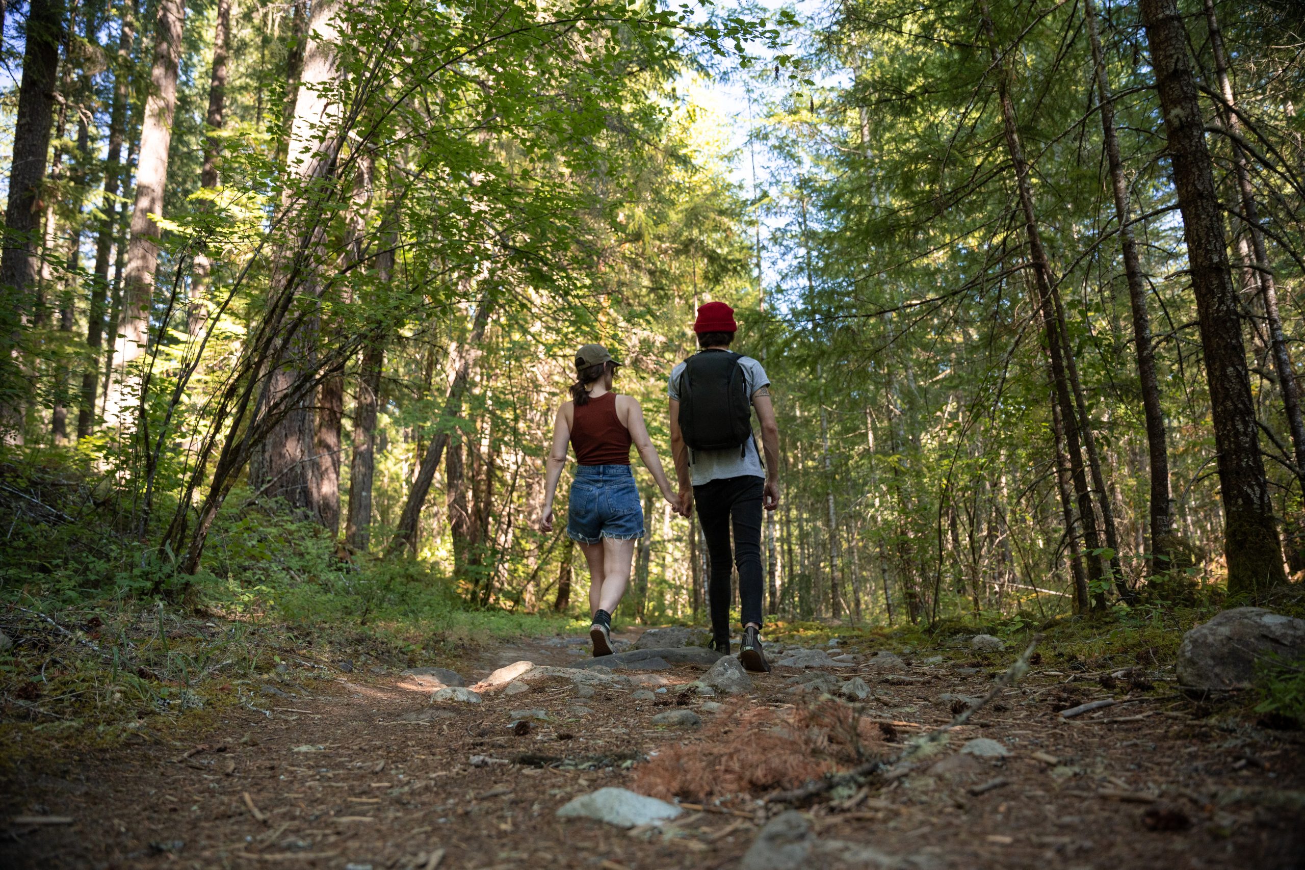 Packwood Lake offers an easy, scenic trail suitable for hikers of all ages and is accessible earlier in the season than many other South Cascades trails. Located near a passenger-friendly road and featuring fishing spots, wildflowers, and historical touches, the lake trail gives a glimpse of Mount Rainier from the trailhead and provides plenty of quiet lakeshore spots, even on busy days. The Taidnapam people used the lake long before the early 1900s trail was built, and a forested island in the lake adds to its picturesque charm. Hikers can explore a historical guard station, and fishing enthusiasts will find posted regulations at the trailhead. Those seeking a longer trek can continue to the Pacific Crest Trail or loop back on the multi-use Pipeline Road Trail, which offers views of the hydroelectric project, mossy cliffs, and waterfalls.