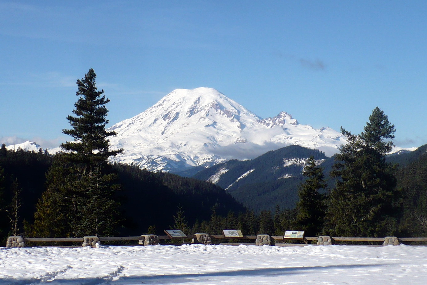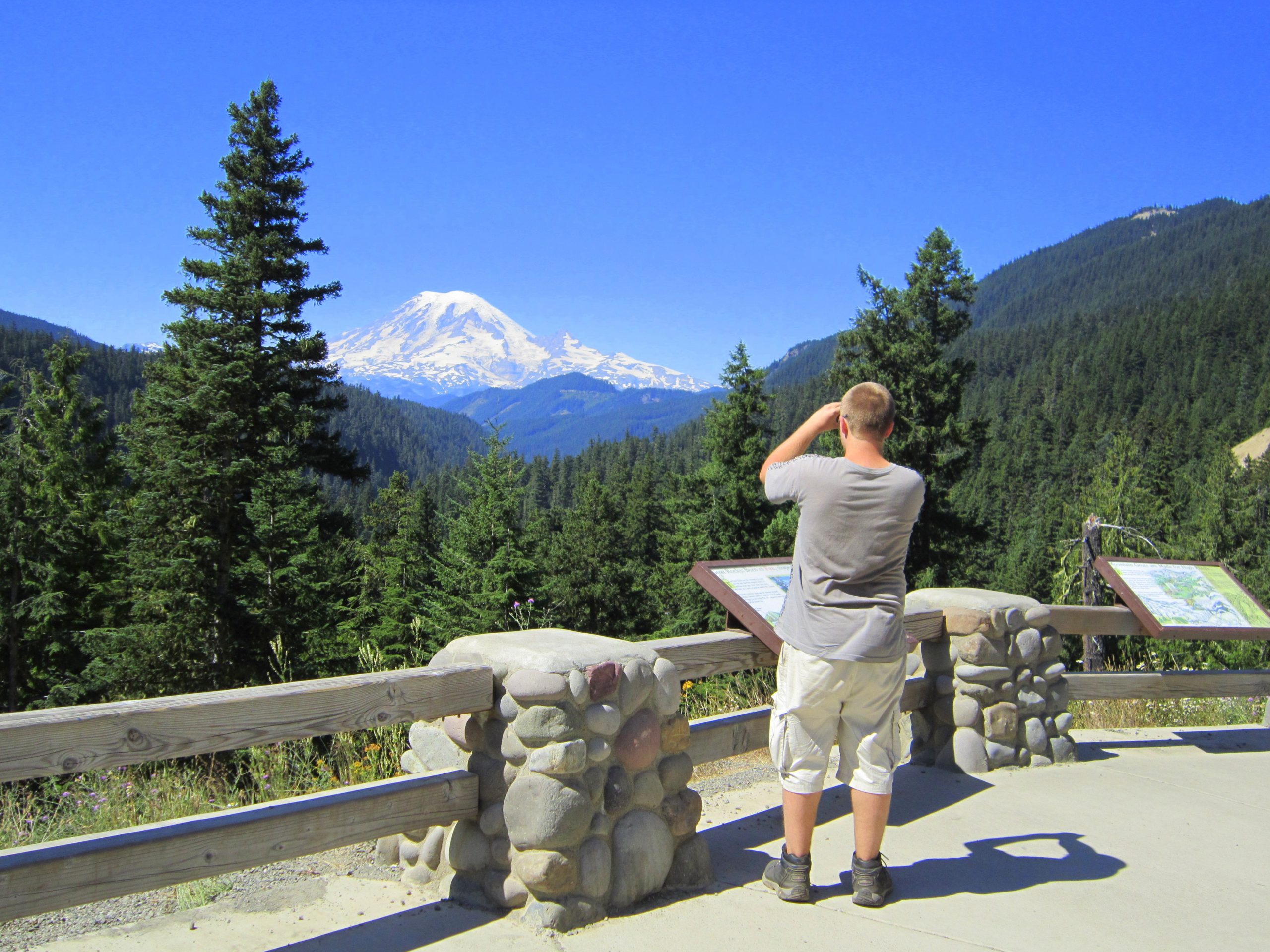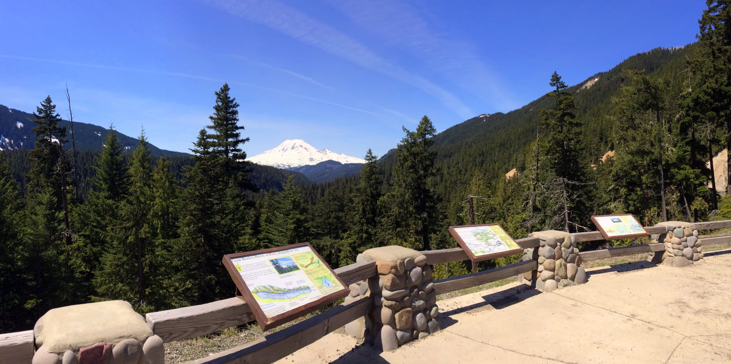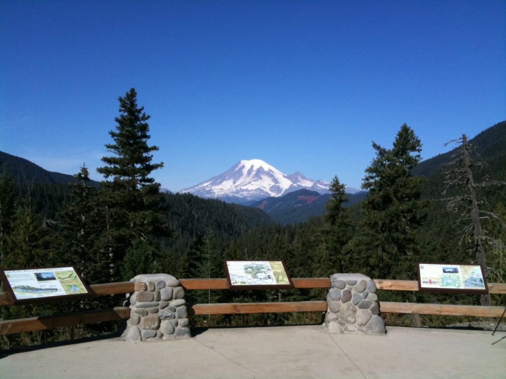 What a view! This stop offers magnificent views of Mt. Rainier and the Goat Rocks. Named after the goats inhabiting the area, the Goat Rocks are part of an ancient volcano which once stood over 12,000 feet high. After thousands of years of erosion, today the range’s highest point is slightly over 8,000 feet.