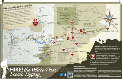 This trail offers views of the Cowlitz River Valley, Goat Dike, and Smith Point. There is limited trailhead space.